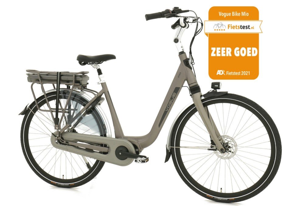 Mio, frame met lage instap. Krachtige Bafang M300 motor met rotatiesensor. 468 Wh accu in de bagagedrager. 8 versnellingen en hydraulische schijfremmen. Kleuren display.